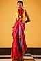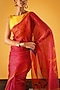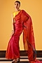 Featuring a red saree in kota silk base with print. Accentuate it with a blouse, polki earrings and block heels for a graceful look, perfect for festive soirees, cultural events or a pooja ceremony.