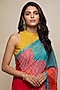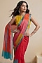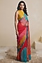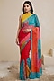 Featuring a red saree in silk chiffon base with floral motifs detailing. Accentuate it with a blouse, polki earrings and block heels for a graceful look, perfect for festive soirees, cultural events or a pooja ceremony.