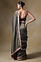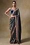 Featuring a grey saree in tissue silk and viscose tissue base with beadwork, stone and cord embroidery. It is paired with a luxe velvet unstitched blouse piece. Accentuate with statement earrings and heels for a wedding, sangeet or engagement ceremony.