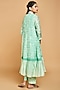 Featuring a mint green kurta in cotton silk base with floral print and gathered hem. It is paired with matching pants and a stole having tassels.