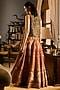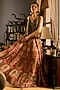 Featuring a red and black lehenga in muslin silk base with print. It is paired with an embroidered tissue silk blouse. Accentuate it with jewellery, a clutch and block heels for weddings or cocktail ceremonies.