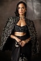 Featuring a black bandhgala jacket in georgette base with gunmetal embroidery. It is paired with a cutdana work blouse and a dhoti. Accentuate it with statement jewellery and heels for a festive occasion, wedding or engagement ceremony.