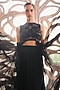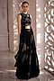 Featuring a black top in georgette base with side drape, applique and cutdana work. It is paired with flared pants. Accentuate it with statement earrings and stilettos for cocktail parties or evening galas.