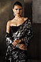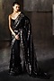 Featuring a black chevron saree in georgette base with sequins work. It is paired with a velvet tasseled blouse and a petticoat. Accentuate it with statement jewellery and heels for a festive occasion, wedding or engagement ceremony.