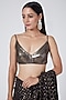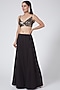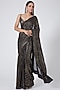 Featuring a black saree in georgette base with mukaish embroidery. It is paired with a matching embroidered blouse.