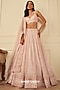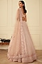 Featuring a blush pink lehenga in chanderi and net base with thread and parsi work. It is paired with a matching embroidered blouse and a net dupatta