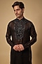 Featuring a black kurta in chanderi base. Style it with pants and mojaris for a festive occasion, cultural event, wedding or engagement ceremony.