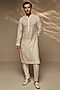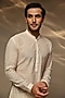 Featuring an ivory kurta in chanderi base. Style it with white churidar, mojaris and a classic watch for a polished look. Perfect for daytime weddings, festive pujas, family functions, or cultural celebrations.