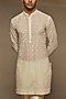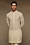 Featuring an ivory kurta in chanderi base. Style it with white churidar, mojaris and a classic watch for a polished look. Perfect for daytime weddings, festive pujas, family functions, or cultural celebrations.