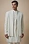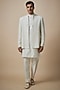Featuring an ivory indowestern in silk base. It is paired with pants. Perfect wear for a wedding, sangeet or engagement ceremony, exuding charm and elegance.