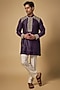 Featuring a purple kurta in silk base. Style it with pants and mojaris for a festive occasion, cultural event, wedding or engagement ceremony.