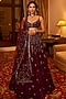 Wine Velvet Cutdana Embroidered Lehenga Set