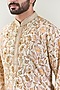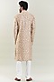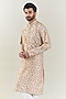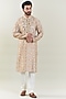 Featuring a beige floral kurta in silk satin base with hand embroidery. It is paired with contrasting ivory churidar pants.