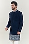 Dark Blue Poly Viscose Embroidered Sherwani Set