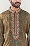 Featuring a mehendi green kurta in georgette base with hand embroidery. It is paired with contrasting churidar pants.