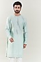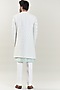 Featuring a mint green indo-western jacket in georgette base with floral embroidery. It is paired with a matching silk kurta and contrasting trousers.