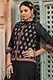 Featuring a black anarkali in banarasi kora silk base with tribal print and crepe lining. It is paired with a matching front open jacket having block print and mirror work.