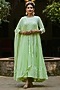 Green Mul Cotton Printed & Embroidered Tiered Anarkali Set