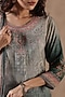 Featuring a green kurta in muslin silk base with mirror work and floral print. It is paired with shantoon slip-on trousers having one side pocket, including a chinon silk floral printed dupatta having tassels and gota border. Accentuate it with statement jewellery and heels for festive occasions.