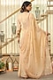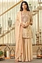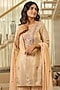 Featuring a beige straight kurta in shimmer tissue base with thread, zari and mirror embroidery, including a round neckline. It is paired with chinon silk sharara pants and a chiffon dupatta. Perfect for daytime weddings, festive celebrations, engagements, and family gatherings. Pair with pearl or kundan polki jewellery and nude heels for a graceful look.