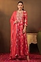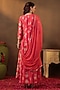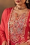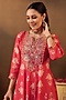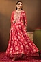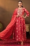 Featuring a coral anarkali in chanderi silk base with embroidery. It is paired with shantoon pants and a chiffon dupatta. Accentuate it with kundan polki jewellery and embellished heels for festive celebrations, weddings, or mehendi ceremonies.