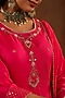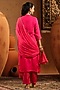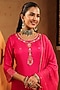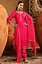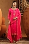 Featuring a fuchsia straight kurta in russian silk base with thread handwork embroidery. It is paired with shantoon pants and a chiffon dupatta. Accentuate it with kundan polki jewellery and embellished heels for festive celebrations, weddings, or mehendi ceremonies.