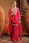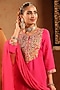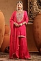 Featuring a fuchsia kurta in russian silk base with thread handwork embroidery. It is paired with shantoon sharara and a chiffon dupatta. Accentuate it with kundan polki jewellery and embellished heels for festive celebrations, weddings, or mehendi ceremonies.