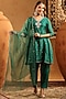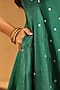 Featuring a green paneled anarkali in organza silk base with beads, thread and sequins hand embroidery, including a v-neckline. It is paired with shantoon salwar pants and an organza silk embroidered dupatta. Perfect for daytime weddings, festive celebrations, engagements, and family gatherings. Pair with pearl or kundan polki jewellery and nude heels for a graceful look.