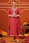 Featuring a hot pink paneled anarkali in chinon silk base with bandhani print, gota patti, zari and dori embroidery, including a v-neckline. It is paired with shantoon straight pants and a chiffon dupatta having printed border. Perfect for daytime weddings, festive celebrations, engagements, and family gatherings. Pair with pearl or kundan polki jewellery and nude heels for a graceful look.