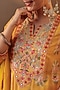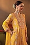 Featuring a mustard anarkali in chanderi silk base with floral embroidery. It is paired with shantoon pants and a chiffon dupatta. Accentuate it with kundan polki jewellery and embellished heels for festive celebrations, weddings, or mehendi ceremonies.