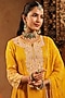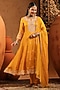 Featuring a mustard anarkali in russian silk base with thread handwork embroidery. It is paired with shantoon pants and a chiffon dupatta. Accentuate it with kundan polki jewellery and embellished heels for festive celebrations, weddings, or mehendi ceremonies.