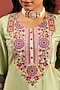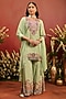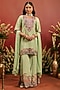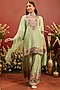 Featuring a pista green kurta in crepe silk base with thread handwork embroidery. It is paired with shantoon sharara and a chiffon dupatta. Accentuate it with kundan polki jewellery and embellished heels for festive celebrations, weddings, or mehendi ceremonies.