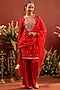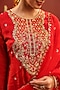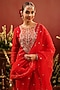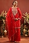 Featuring a red straight kurta in organza silk base with zari and dori embroidery, including a round neckline. It is paired with shantoon sharara pants and an organza silk dupatta. Perfect for daytime weddings, festive celebrations, engagements, and family gatherings. Pair with pearl or kundan polki jewellery and nude heels for a graceful look.