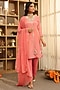 Rose Pink Shimmer Tissue Zari Embroidered Short Anarkali Set