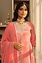 Featuring a rose pink short anarkali in shimmer tissue base with zari embroidery. It is paired with shantoon salwar and a chiffon dupatta. Accentuate it with kundan polki jewellery and embellished heels for festive celebrations, weddings, or mehendi ceremonies.