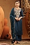 Teal Russian Silk Thread & Sequin Embroidered Kurta Set