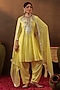 Featuring a yellow anarkali in chanderi silk base with gota patti embroidery. It is paired with shantoon salwar and a chiffon dupatta. Accentuate it with kundan polki jewellery and embellished heels for festive celebrations, weddings, or mehendi ceremonies.
