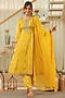Featuring a yellow paneled anarkali in shimmer tissue base with thread, zari and sequins embroidery, including a sweetheart neckline. It is paired with shantoon solid pants and a chiffon dupatta. Perfect for daytime weddings, festive celebrations, engagements, and family gatherings. Pair with pearl or kundan polki jewellery and nude heels for a graceful look.