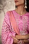 Featuring a pink straight kurta in muslin silk base with bandhani print, thread, sequins work, and gota patti detailing. It is paired with contrasting white viscose blend slip-on trousers and a muslin silk chiffon printed dupatta.