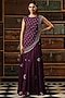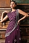 Featuring a purple anarkali in chinnon silk base with block print. It is paired with a matching dola silk embellished cape.