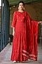 Red Cotton Jacquard Embellished Tiered Dress With Dupatta