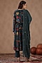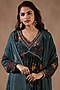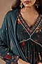 Teal Crepe Silk Floral Printed & Embellished Gathered Kurta Set