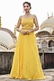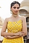 Featuring a yellow lehenga in bemberg muslin base with polka dot print, tassels and a cancan. It is paired with a bemberg muslin silk strapped choli having sequins, mirror, beads, shells and coins embellishments, including a pink organza dori embellished cape. Style it with dangler earrings and heels for festive occasions or haldi ceremony.