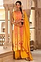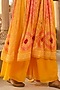 Featuring a yellow pleated kurta in chinon silk base with dori tassels, crochet work, shibori bandhani print, thread, resham sequins, and mirror hand work. It is paired with matching georgette flared palazzo pants, a chiffon embellished dupatta, and a hand embroidered tie-up belt.