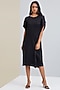 Featuring a black asymmetrical shift dress in polyester base.