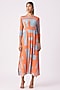 Blue & Orange Polyester Abstract Printed A-Line Dress