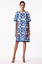 Featuring a blue shift dress in polyester base with indigo print.