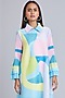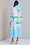 Featuring a blue A-line shirt dress in polyester base with print, layered bell sleeves, and ruffled detailing. It is paired with a matching belt.