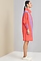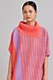 Featuring a bright coral tunic dress in polyester base with turtle neck collar and batwing sleeves, including monochrome print.