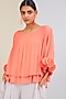 Featuring a coral peach layered top in polyester base with petal shaped applique detailing. This contains only one piece.